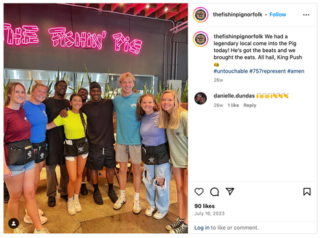 For a restaurant, good social media means keeping customers up to date with specials and events, introducing them to new food and drink items, and showcasing the personality of the place. For the Fishin' Pig I succeeded in doing just that and keep posts upbeat and brightly colored as well as focus on video content. Unfortunately, three months into my position, the Instagram was hacked, I became locked out, and the entire account was deleted. I built the account back from the ground up, creating better highlights, and re-building their following. Therefore, the pictures below are from this new IG account, since all my work was erased from the old one. Learning experience indeed.